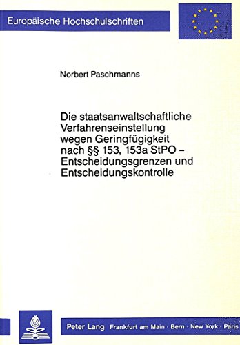 Read Die staatsanwaltschaftliche Verfahrenseinstellung wegen Geringfügigkeit nach §§ 153, 153a StPO - Entscheidungsgrenzen und Entscheidungskontrolle (Europäische Hochschulschriften - Reihe II) Online download ebooks free for kindle ... PDF Die staatsanwaltschaftliche Verfahrenseinstellung wegen Geringfügigkeit nach §§ 153, 153a StPO - Entscheidungsgrenzen und Entscheidungskontrolle (Europäische Hochschulschriften - Reihe II) Kindle books digital library PDF Die staatsanwaltschaftliche Verfahrenseinstellung wegen Geringfügigkeit nach §§ 153, 153a StPO - Entscheidungsgrenzen und Entscheidungskontrolle (Europäische Hochschulschriften - Reihe II) Free pdf ebook center. Title ...